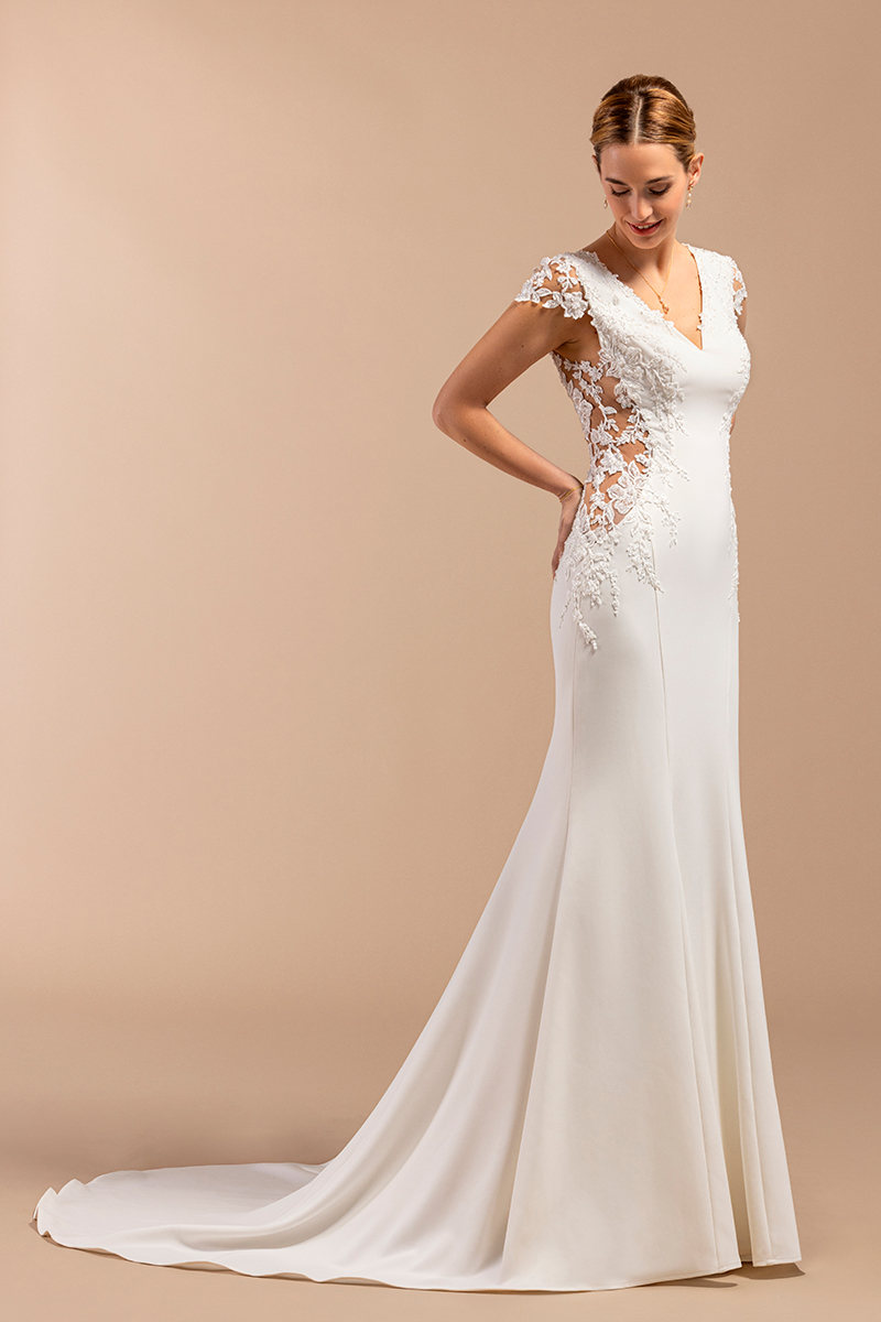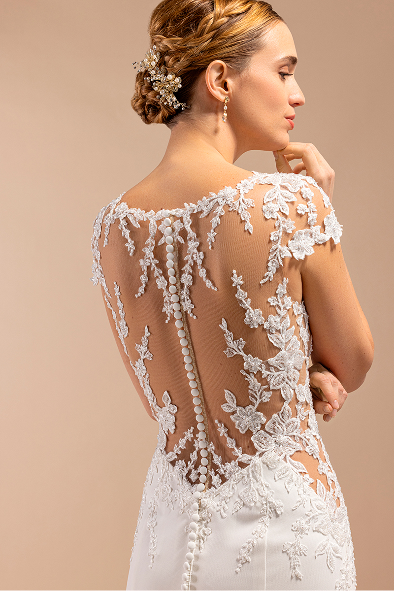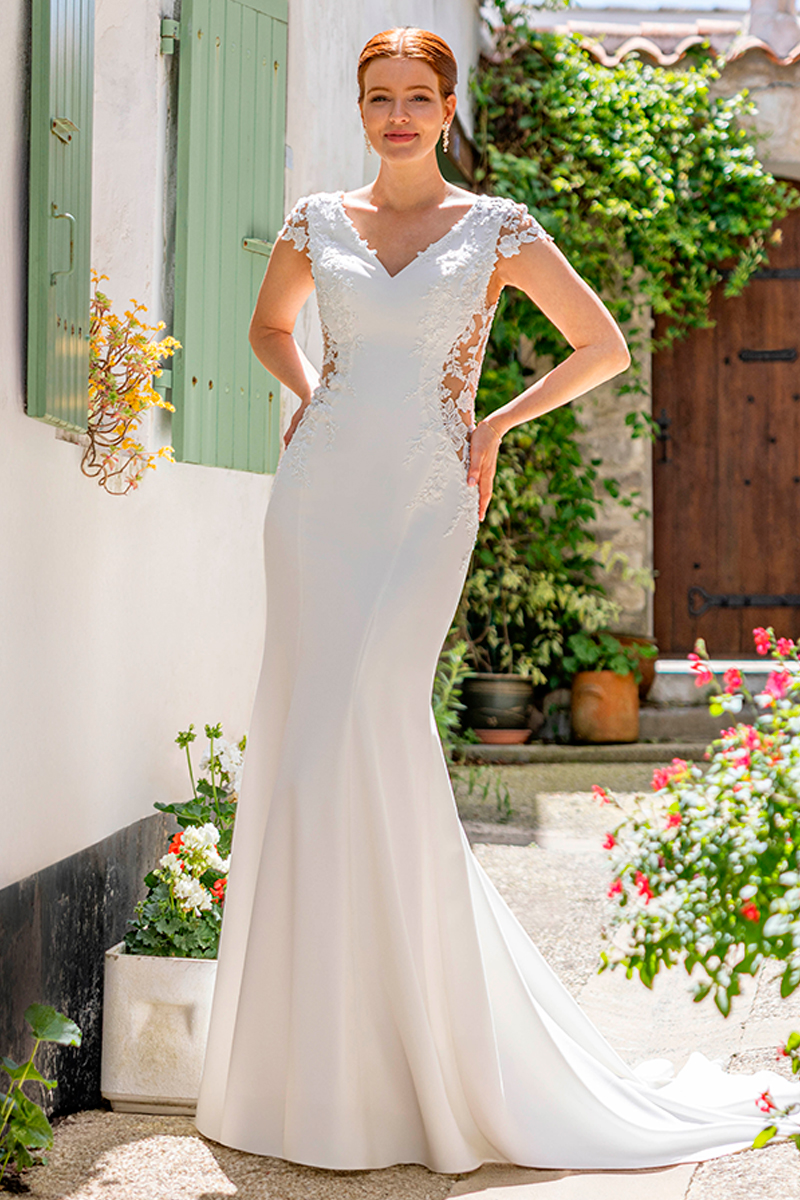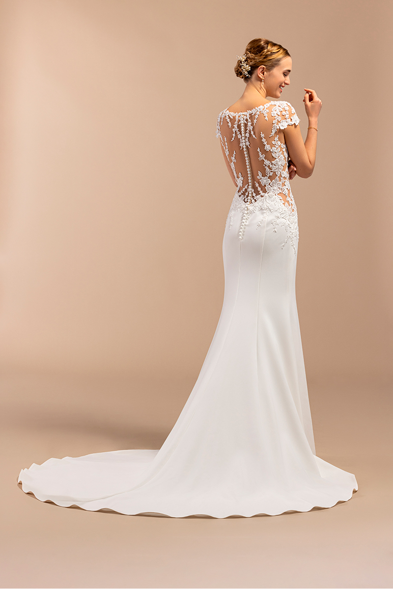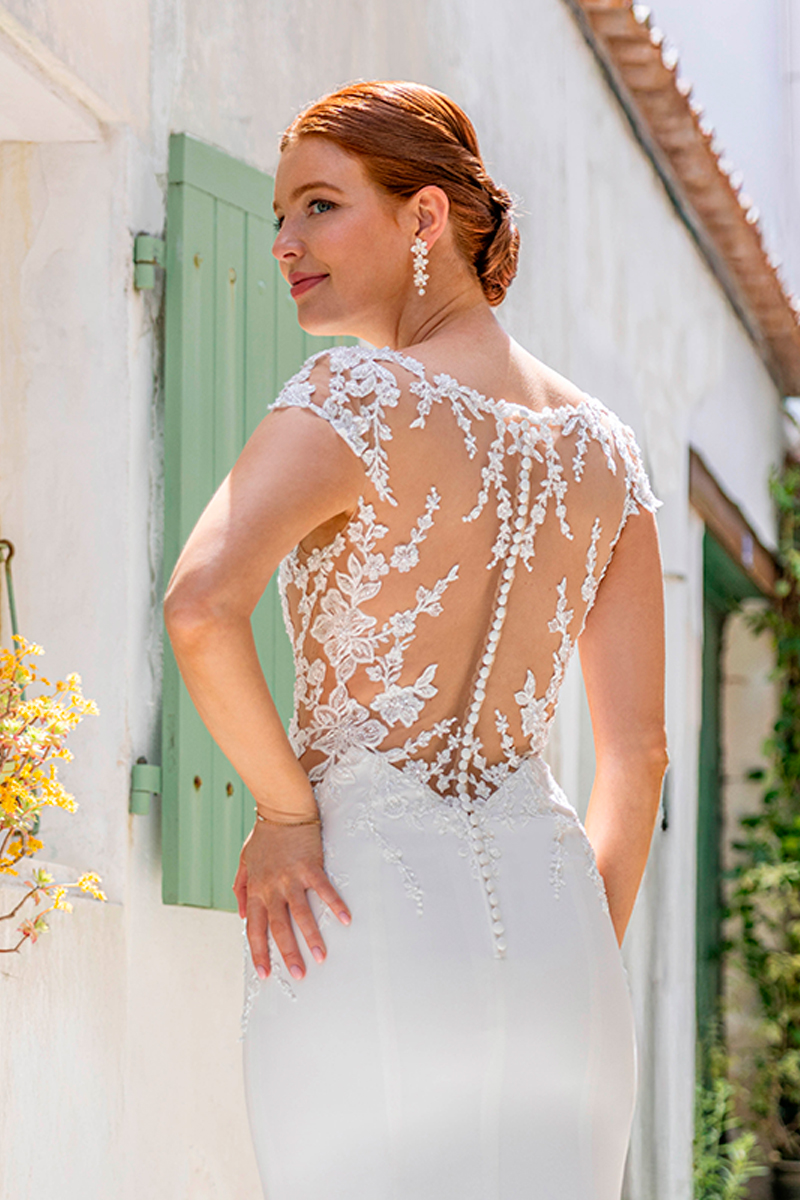 Magnifique robe de mariée coupe sirène , la taille est dévoilé par une dentelle ornée de perles qui se poursuit dans le dos