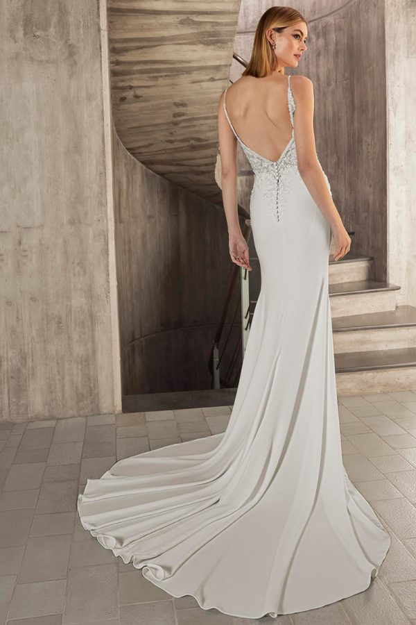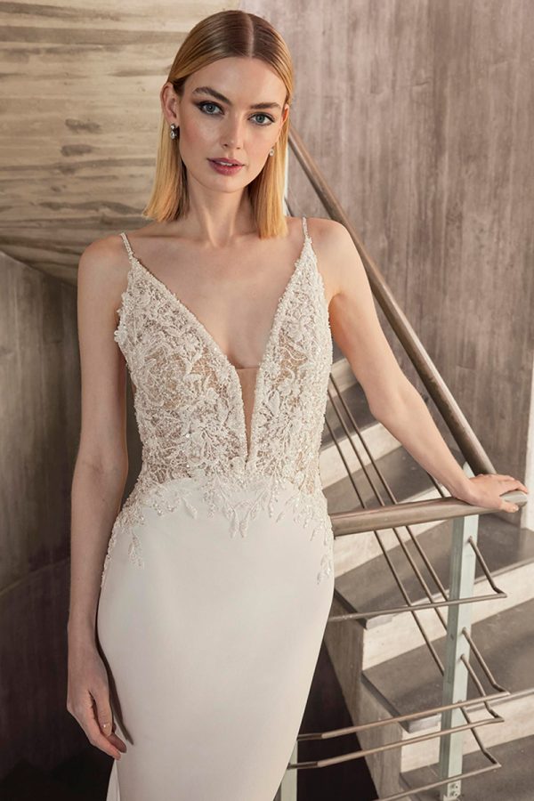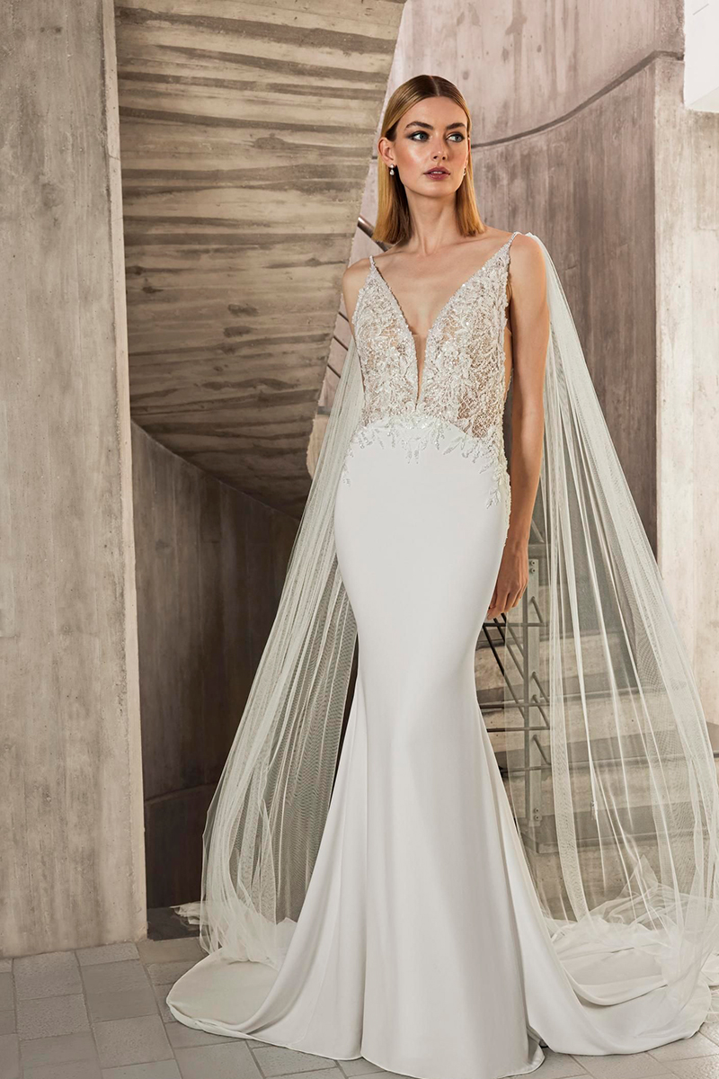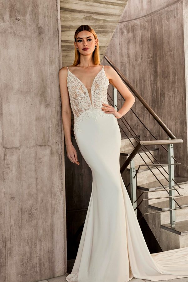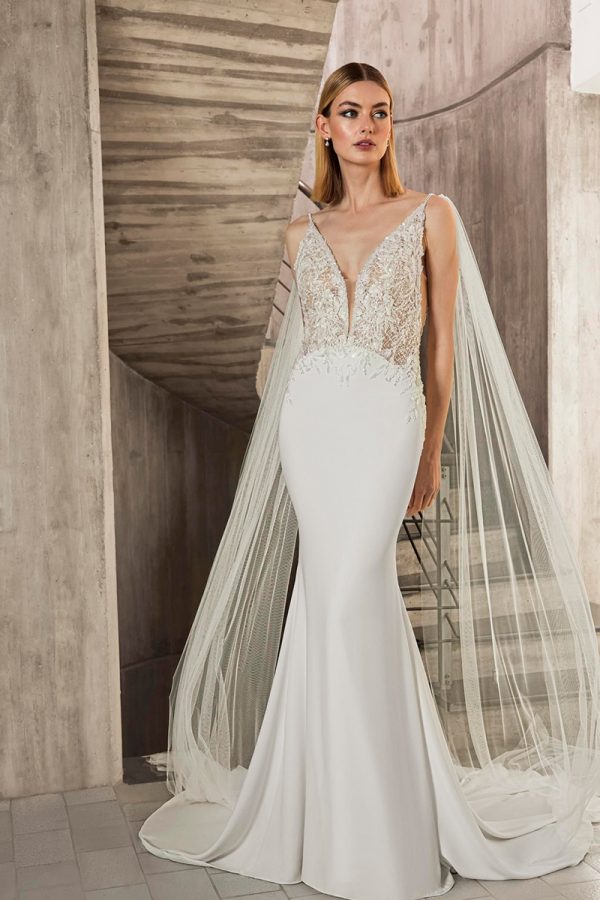 Superbe robe de mariée forme sirène , bustier travaillé en dentelle et sequins et perles
