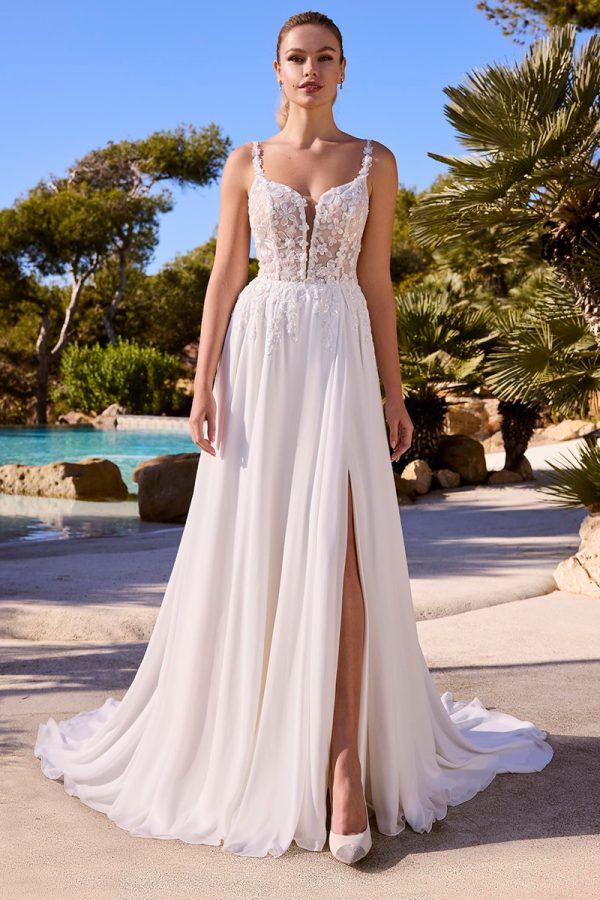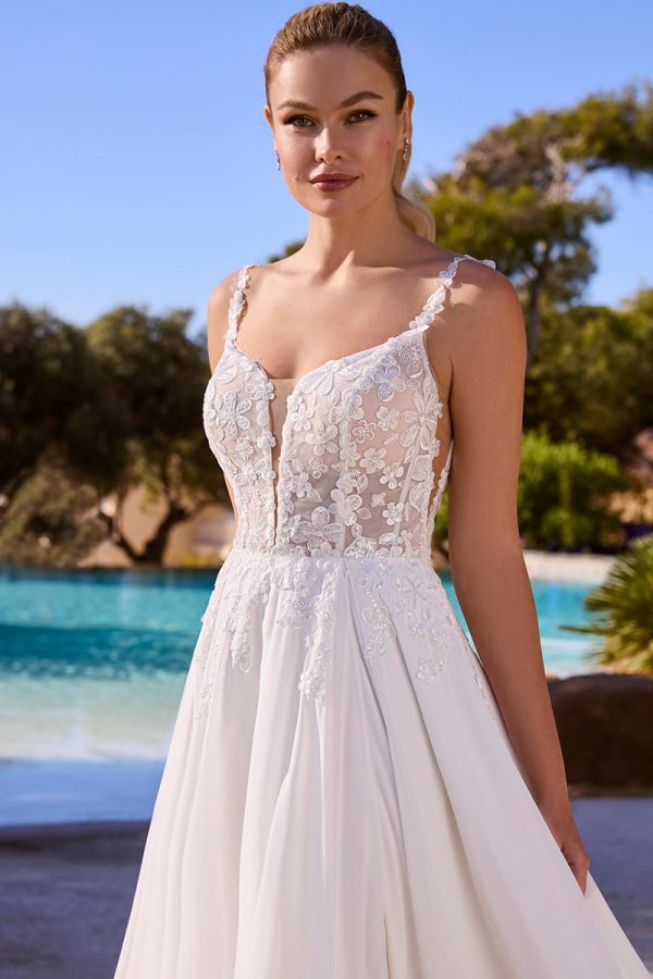 Très belle robe de mariée fluide ,bustier corseté assurant un très bon maintien rehaussé de broderies et jupe fluide fendue