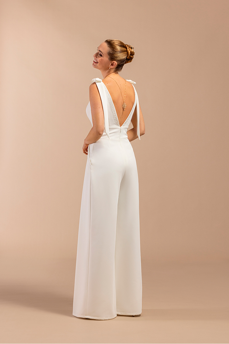Pour les audacieuses et adeptes de la polyvalence cette combinaison en crêpe offre une liberté de mouvement dans un style très chic et actuel.