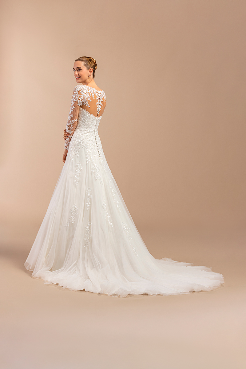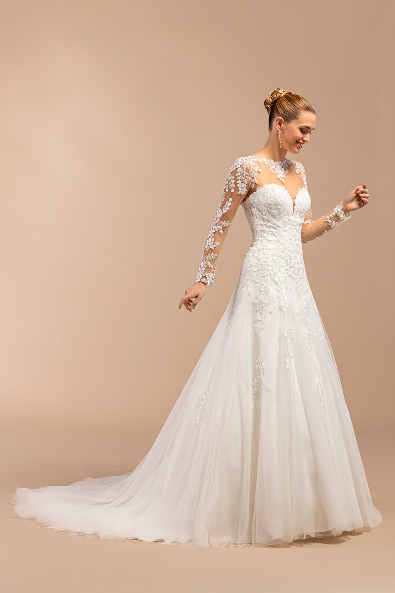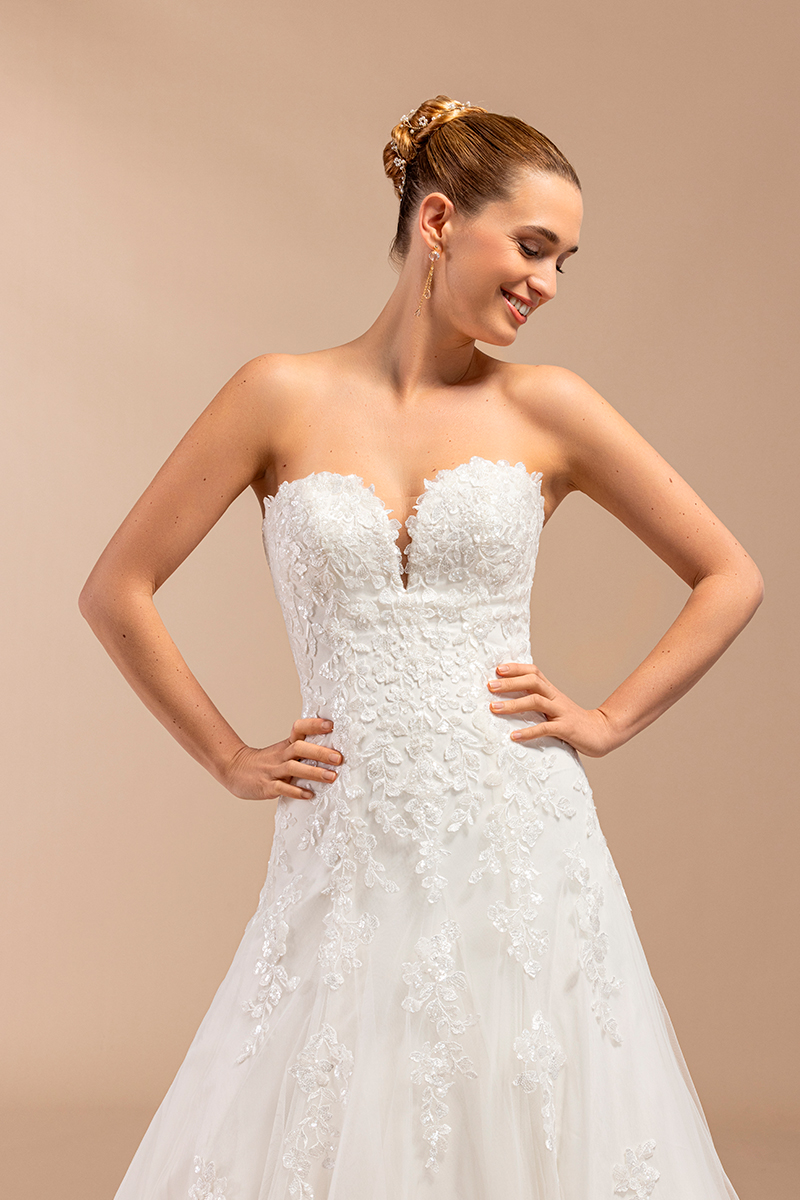 Robe demi-sirène pour sublimer toutes les morphologies bustier en coeur et haut amovible a manches longues a effet tatouage pour la dentelle
