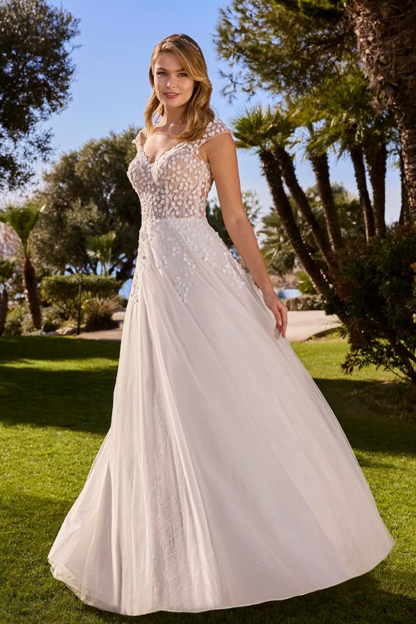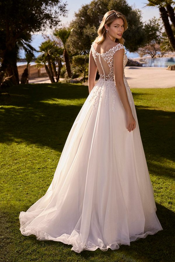 Robe Romantique, dentelle moderne, en tulle , paillettes , large encolure sur les épaules,